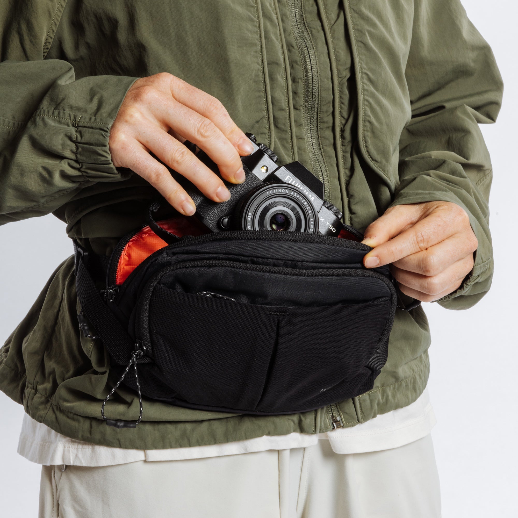 The lightest, fastest bag option. Designed to keep your mobile or small camera safe, dry, and secure when moving. Its ultra-slim crossbody design rides comfortably over or under clothing, conforming to your body with webbing wings and lightweight materials that move with you. Quick-adjust hardware lets you tighten or loosen on the fly, while the main compartment can fit all of your daily essentials.
